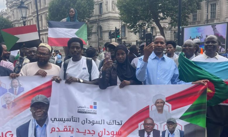 شهدت العاصمة البريطانية لندن، السبت، مسيرة جماهيرية حاشدة شارك فيها آلاف السودانيين المقيمين في المملكة المتحدة، تأييداً لإعلان حكومة السلام والوحدة التي أطلقها تحالف السودان التأسيسي من مدينة نيالا أواخر يوليو الماضي.