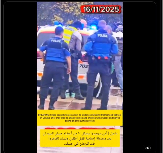 الشرطة السويسرية توقف أشخاص بعد “حادثة اشتباه” خلال تظاهرة ضد البرهان في جنيف