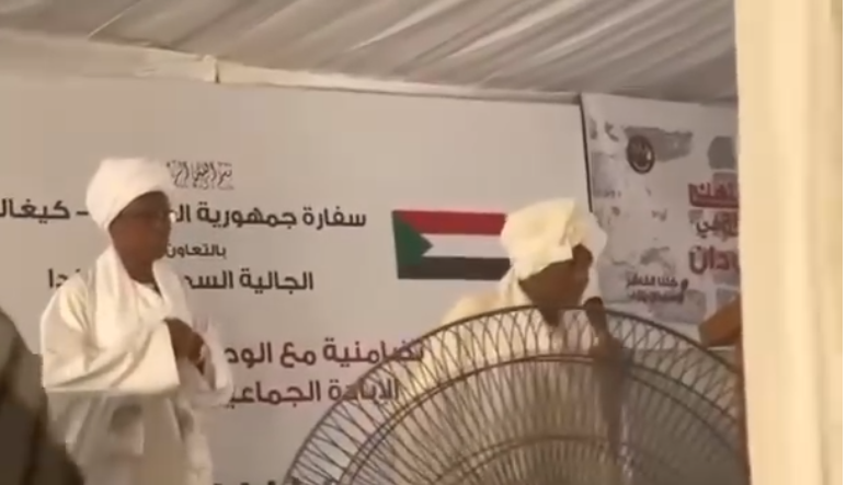 وخلال الفعالية التي وُصفت بأنها مساندة للحرب في السودان، ظهر رجل يُدعى “العم حسن مصطفى”، قُدِّم على أنه رئيس الجالية السودانية في رواندا، وهو يلوّح بسيفٍ مجازي معلناً أمام الحضور: “سأقطع رأس البرهان إذا تراجع عن الحرب”، وسط تصفيق وتكبير من بعض المشاركين، في مشهد تم توثيقه بالفيديو وانتشر على نطاق واسع عبر وسائل التواصل الاجتماعي.