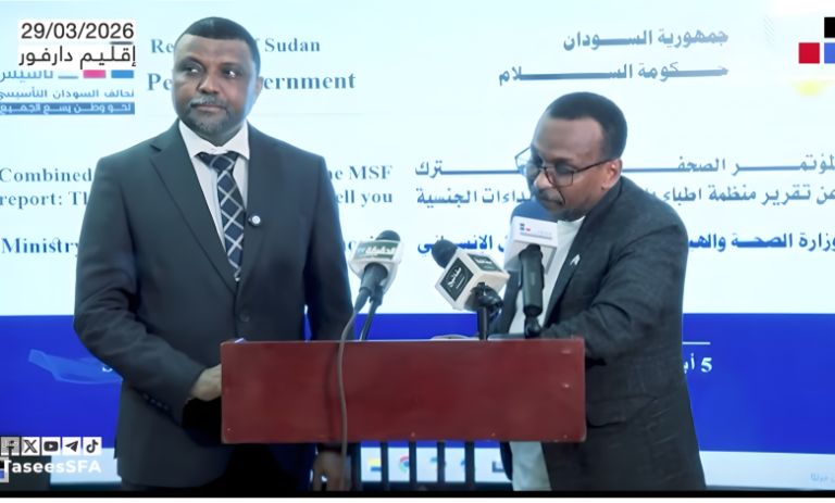 رفضت حكومة السلام والوحدة ما ورد في تقرير صادر عن منظمة أطباء بلا حدود بشأن العنف الجنسي في مناطق خاضعة لسيطرة قوات مرتبطة بتحالف «تأسيس»، ووصفت ما جاء فيه بأنه «مضلل» ويحتوي على معلومات غير دقيقة.